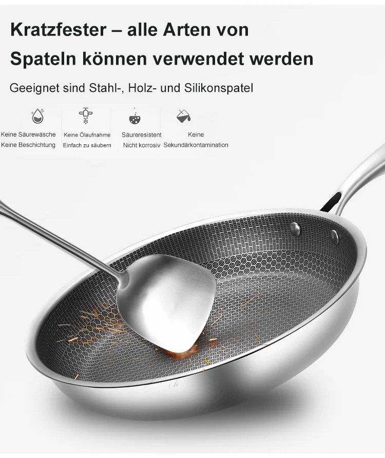 Antihaftbeschichtete Pfanne aus antibakteriellem Edelstahl der neuen Generation
